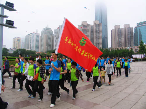 所有參與人員在五四廣場(chǎng)五月風(fēng)下集合。活動(dòng)開始前,集團(tuán)領(lǐng)導(dǎo)發(fā)表了講話,隨后大家從五四廣場(chǎng)出發(fā),沿木棧道向西步行,在第二海水浴場(chǎng)處領(lǐng)取中點(diǎn)牌后,經(jīng)東海飯店,由武昌路到達(dá)集團(tuán)總部(終點(diǎn)),全程約5公里。在海川大旗的帶領(lǐng)下,大約一小時(shí)左右全部到達(dá)終點(diǎn),并領(lǐng)取了獎(jiǎng)品。