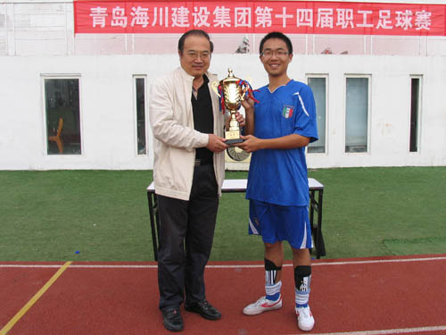 繼10月9日分組預(yù)賽之后,17日(星期天)上午,海川集團(tuán)“海川建設(shè)杯”第14屆職工足球賽在市北區(qū)中聯(lián)運(yùn)動(dòng)公園足球場進(jìn)行了半決賽和決賽。吳鑫董事長和欒恒忠副總裁蒞臨球場為球員鼓勁,并在閉幕式上分別為前三名球隊(duì)頒獎(jiǎng)。決賽是在三分公司足球隊(duì)和物流分公司足球隊(duì)之間進(jìn)行的,這是一場精彩的進(jìn)球大戰(zhàn),最終三分公司以5:4的比分險(xiǎn)勝物流分公司隊(duì),獲得冠軍;物流分公司獲得亞軍;海川總部以4:2戰(zhàn)勝二分公司隊(duì)獲得第三名。