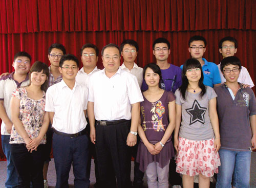 座談會最后,吳總做了總結(jié)講話,他說,我們成立“海川建設(shè)校園俱樂部”的目的是為了以這樣一種方式為社會造就最優(yōu)秀的人才,讓俱樂部會員成為職場精英,俱樂部為學(xué)生提供一個造就自我的平臺,同時也是俱樂部會員們快樂渡過大學(xué)生活的一個平臺,塑造一個實現(xiàn)人生價值的平臺。同時吳總用自己“老馬自知夕陽晚,不需揚鞭自奮蹄”的人生進取精神勉勵同學(xué)們,鼓勵同學(xué)們要趁著年輕的美好時光,不斷去學(xué)習(xí)充實自己,盡可能的使自己的知識水平提升一個臺階。并勉勵大家在以后的人生道路上,要踏實做好自己的事情,善于思考、鉆研,爭取把自己的工作做到完美;要給自己制定目標(biāo),并向著這個目標(biāo)努力工作。同時邀請同學(xué)們在2012年海川集團成立60周年的時候,再“回家”來看看。座談會后,吳總與大家合影留念。