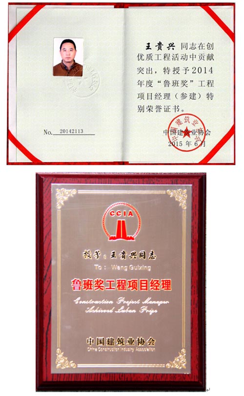 王貴興榮膺“魯班獎”工程項目經(jīng)理