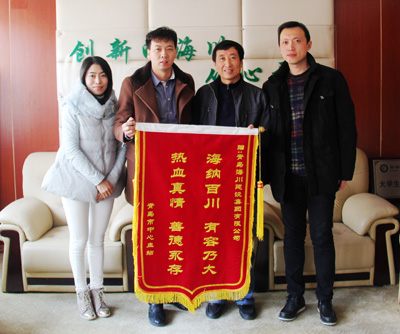 “我們代表青島市中心血站,向海川集團(tuán)表示感謝,感謝你們對(duì)無(wú)償獻(xiàn)血工作的支持,感謝你們?yōu)槲沂袩o(wú)償獻(xiàn)血事業(yè)的健康發(fā)展作出的貢獻(xiàn)?!北驹?0日上午,市中心血站張燕華副主任一行,帶著繡有“海納百川,有容乃大;熱血真情,善德永存”的錦旗來(lái)到我集團(tuán),向在此次公益活動(dòng)中踴躍參與、無(wú)償奉獻(xiàn)的企業(yè)職工表示誠(chéng)摯的感謝。工會(huì)主席鄭守國(guó)代表集團(tuán)接受了錦旗,并對(duì)中心血站在此次獻(xiàn)血活動(dòng)中給予海川集團(tuán)的高度重視和好評(píng)表示了感謝。