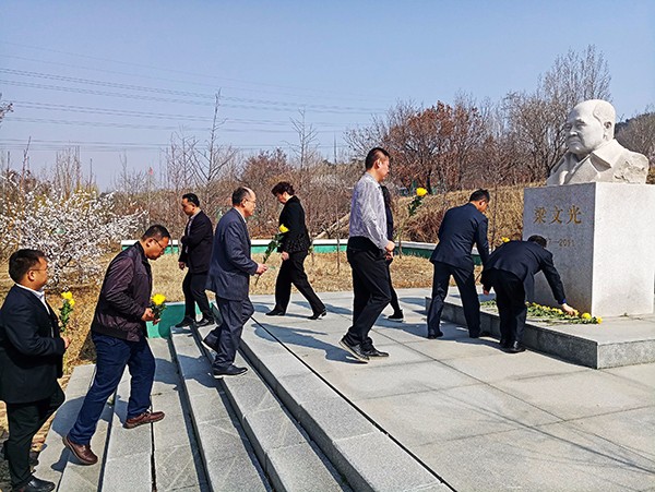 3月27日上午九時(shí)許,紀(jì)念梁文光書記誕辰91周年活動(dòng)在海川農(nóng)林生態(tài)園順利舉行,公司高管和各單位主要負(fù)責(zé)人參加紀(jì)念儀式。集團(tuán)執(zhí)行總裁鞠正球做致辭講話,帶領(lǐng)我們追憶了梁文光書記愛崗敬業(yè)、拼搏奮斗的一生。