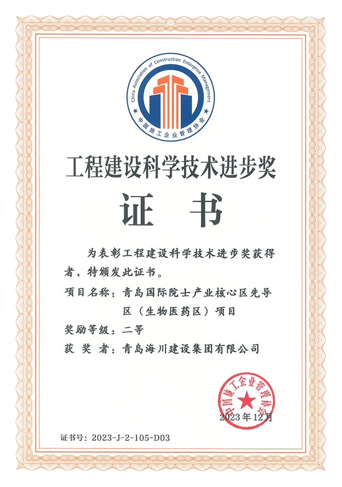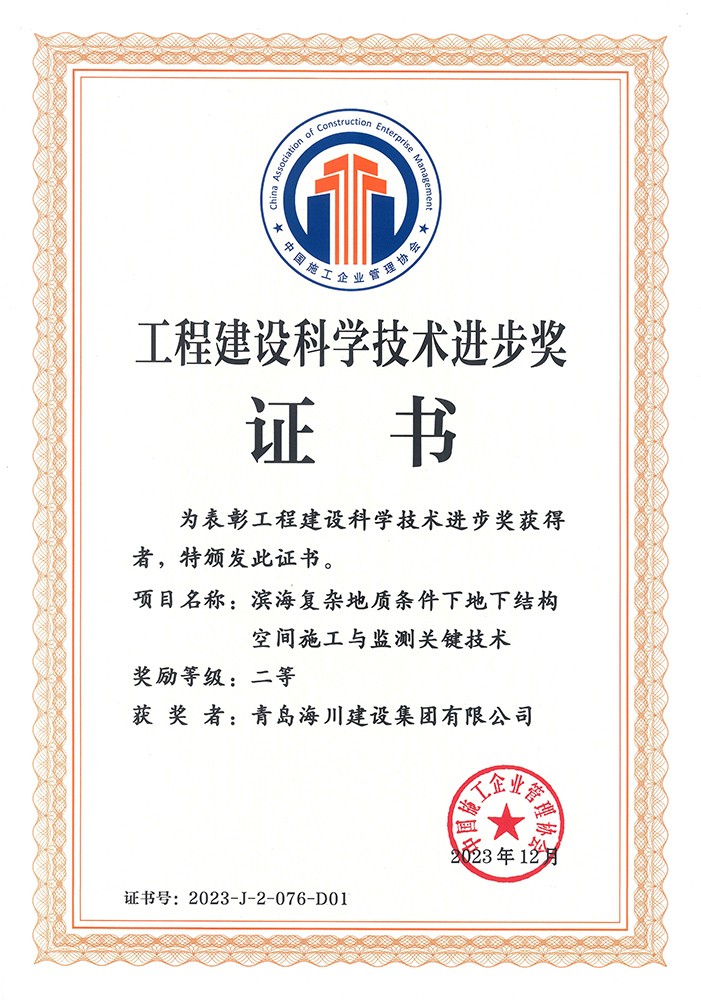 近日,集團公司從中國施工企業(yè)管理協(xié)會領(lǐng)回了2023年工程建設(shè)科學(xué)技術(shù)獎成果證書兩項,根據(jù)《工程建設(shè)科學(xué)技術(shù)獎評選辦法(2021年修訂稿)》的規(guī)定,經(jīng)科委辦公室形審、專家網(wǎng)評、科委專家委員會評審、科學(xué)技術(shù)委員會審定和公示,以及會長會議批準(zhǔn),由海川建設(shè)主持的課題《濱海復(fù)雜地質(zhì)條件下地下結(jié)構(gòu)空間施工與監(jiān)測關(guān)鍵技術(shù)》以及聯(lián)合申報課題《青島國際院士產(chǎn)業(yè)核心區(qū)先導(dǎo)區(qū)(生物醫(yī)藥區(qū))項目》均獲得了科技進(jìn)步獎二等獎,本次獲獎,是企業(yè)首次以第一完成單位獲得的國家級社會力量科學(xué)技術(shù)獎,對于推動企業(yè)技術(shù)創(chuàng)新具有重大意義。